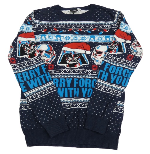Tmavomodro-bílý vzorovaný svetr se Star Wars s vánočním motivem Tu