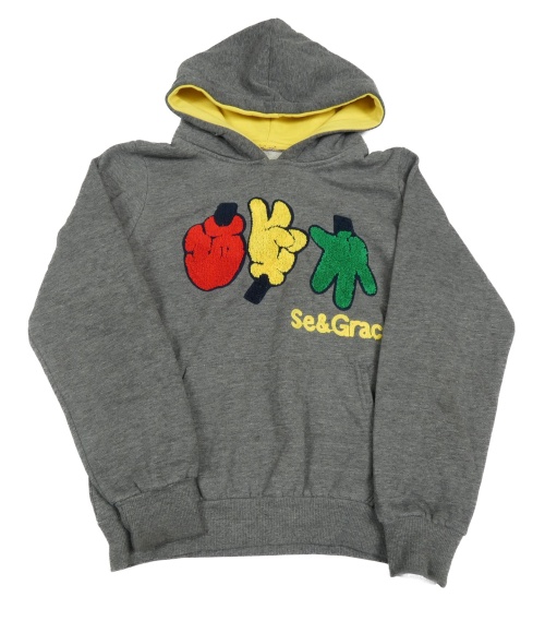 Šedá melírovaná mikina s rukami a kapucí