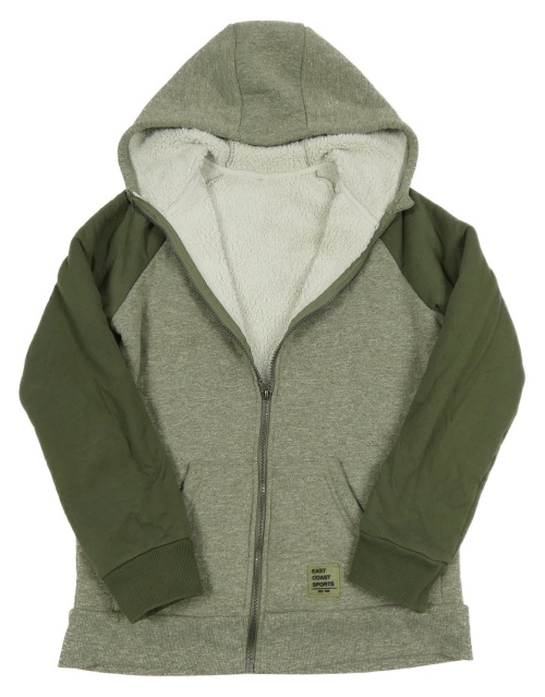 Světlekhaki-khaki melírovaná propínací zateplená mikina s nášivkou a kapucí St. Bernard