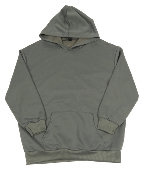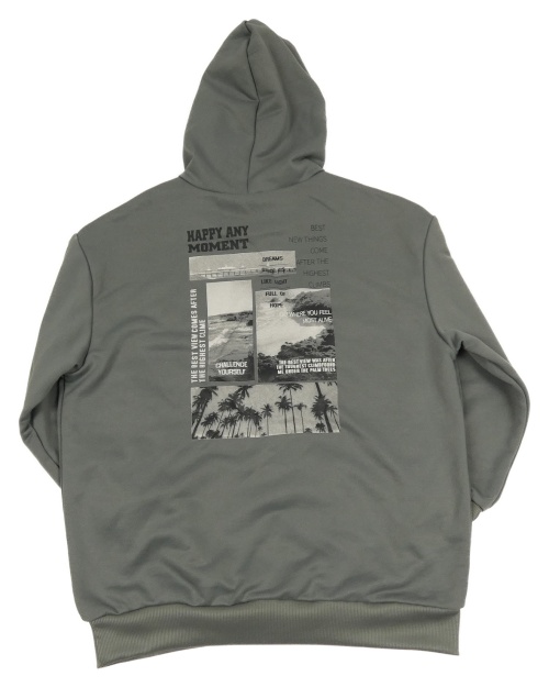 Tmavošedá sportovní mikina s kapsou a mořem a palmami a nápisy a kapucí SHEIN