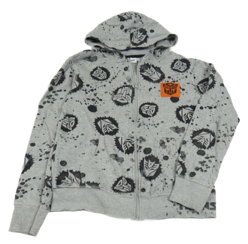 Šedá vzorovaná propínací mikina Transformers a kapucí