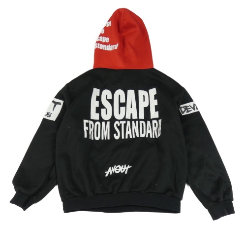Černá mikina s nápisy a červenou kapucí