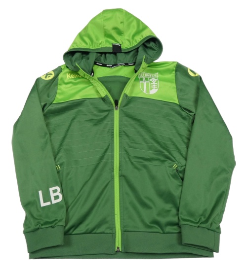 Zelená sportovní propínací mikina s potiskem a kapucí