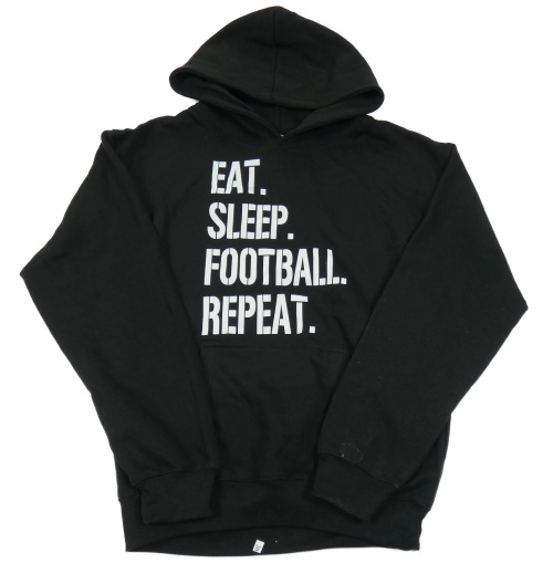 Černá teplá mikina s nápisy a kapsou a kapucí