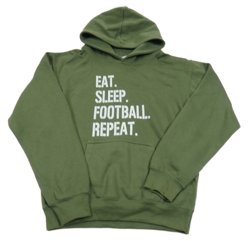 Khaki mikina s nápisem a kapucí