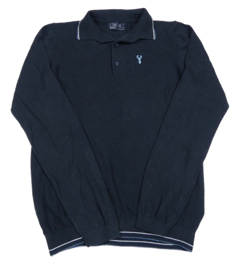 Tmavomodrý vzorovaný svetr s výšivkou a límečkem Next