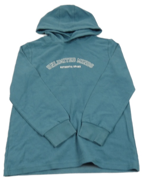 Modrá mikina s nápisem a kapucí