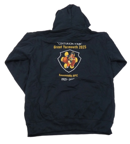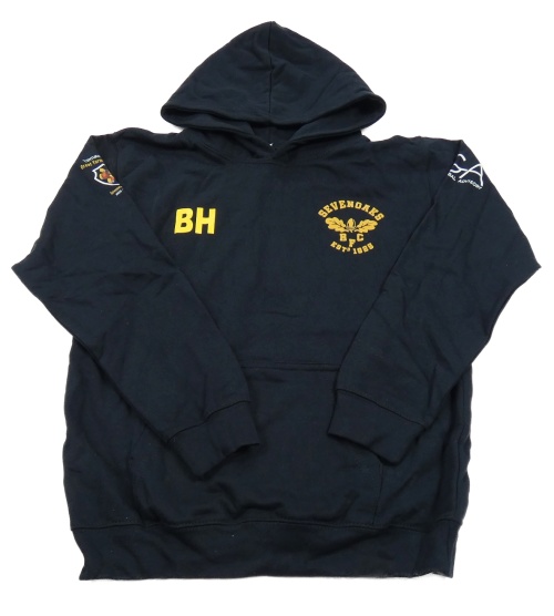 Tmavomodrá mikina s nápisy a žaludem a kapsou a kapucí AWDis