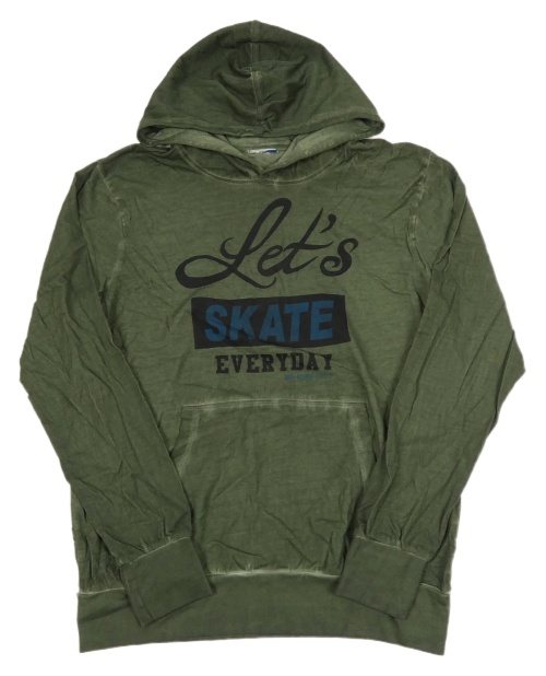 Khaki mikina s nápisem a kapucí