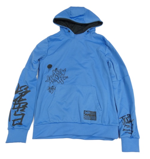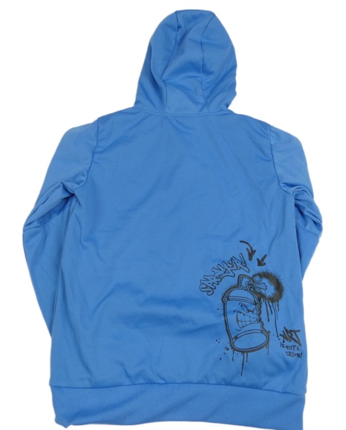 Modrá mikina s graffiti nápisy a kapsou a kapucí YOUNG IDOLS