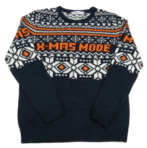 Tmavomodro-bílo-oranžový vzorovaný svetr s nápisem H&M