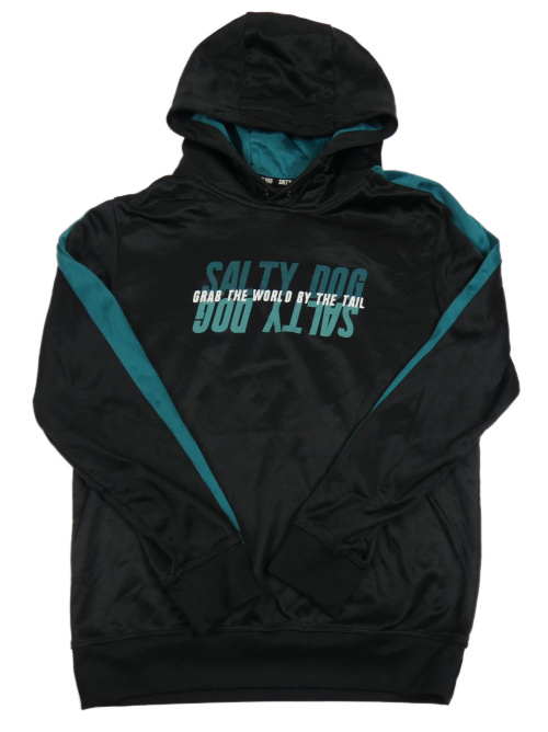 Černo-smaragdová sportovní mikina s nápisem a kapucí