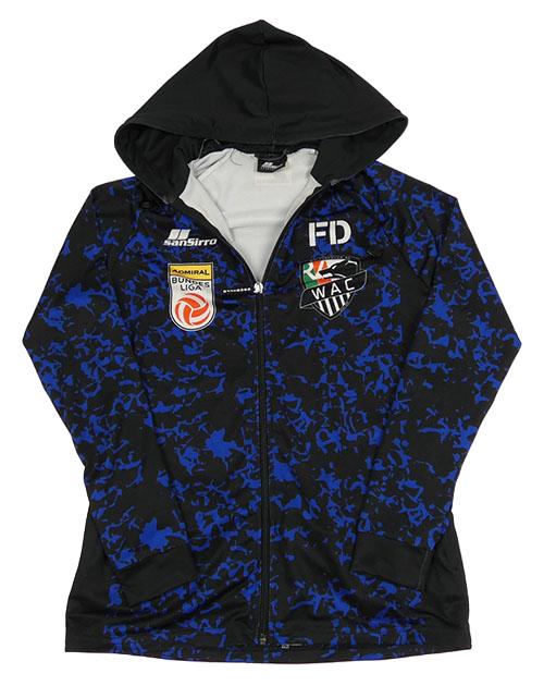 Černo-modrá vzorovaná sportovní propínací mikina s potiskem a kapucí