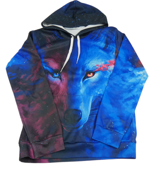 Modro-tmavomodrá sportovní mikina s vlkem a kapucí