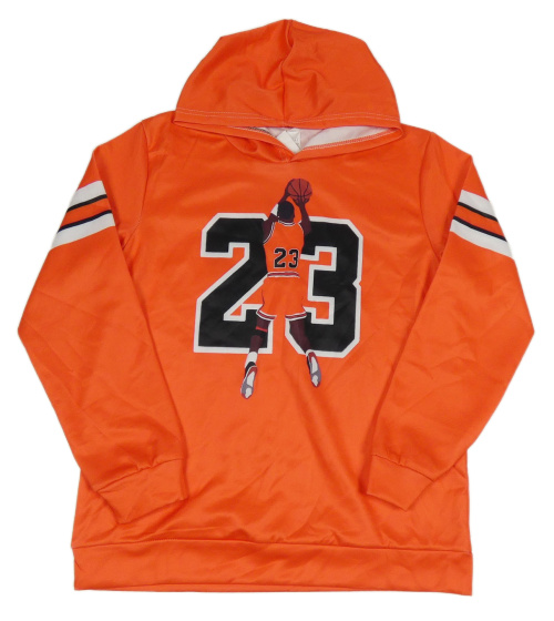 Tmavooranžová sportovní mikina s basketbalistou a číslem a pruhy a kapucí
