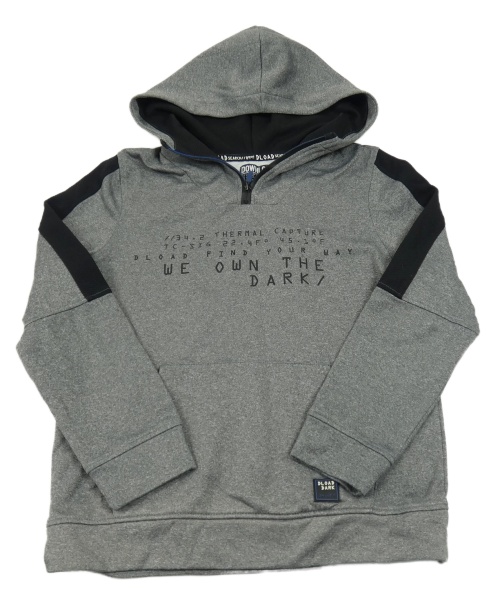 Šedo-černá melírovaná sportovní mikina s nápisy a kapsou a kapucí C&A