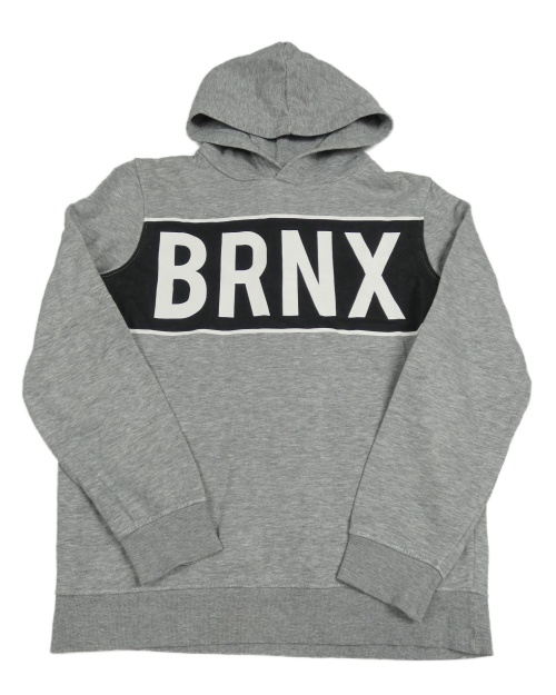 Šedo-černá melírovaná mikina s nápisem a kapucí C&A