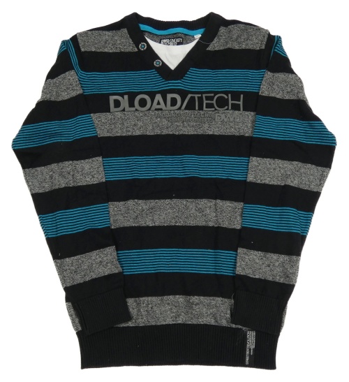 Černo-šedo-modrý pruhovaný svetr s nápisem C&A