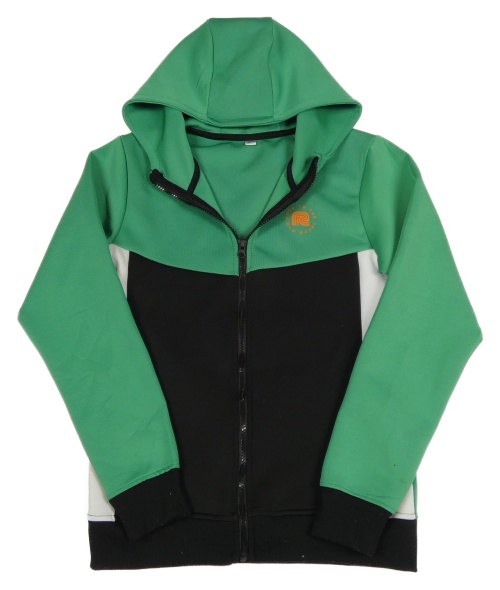 Zeleno-černo-bílá propínací thermo mikina s potiskem a kapucí