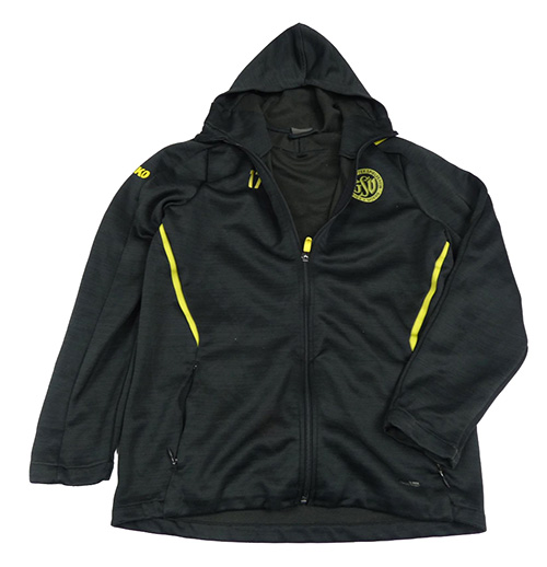 Černá melírovaná sportovní propínací mikina s potiskem a kapucí Jako
