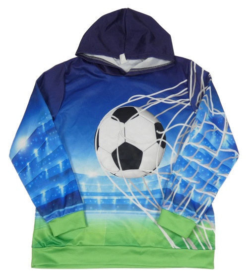 Tmavomodro-modro-zelená sportovní mikina s míčem a kapucí