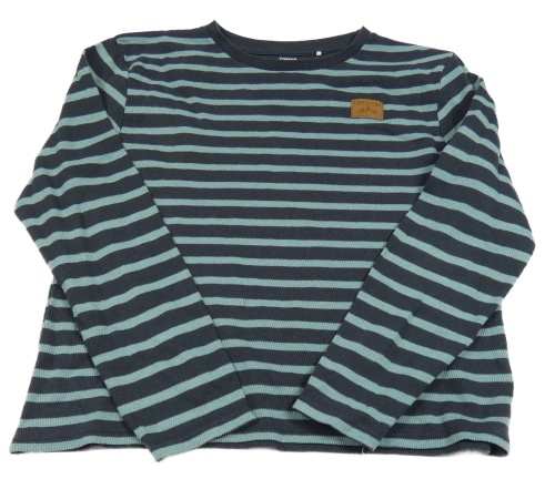 Tmavomodro-modrošedé pruhované žebrované/vzorované mikinotriko s nášivkou YIGGA