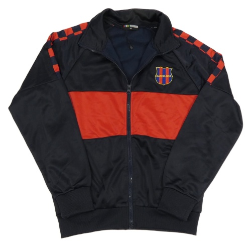 Tmavomodro-červená sportovní fotbalová propínací mikina s nášivkou
