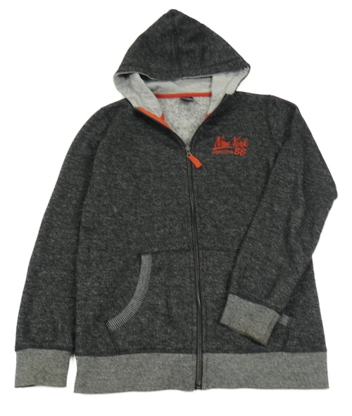 Černo-antracitová melírovaná propínací mikina s nápisy a číslem a kapucí Chapter young
