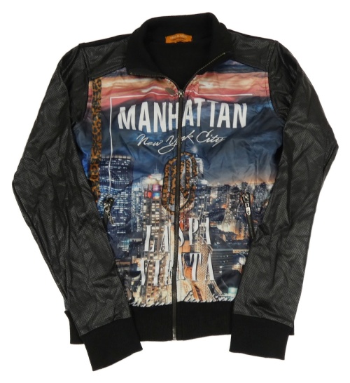 Černá koženkovo/tepláková bundomikina s městem