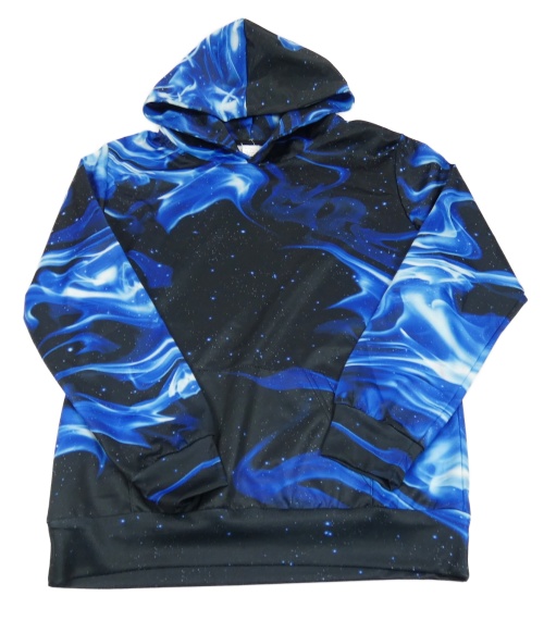 Černo-modro-safírová galaktická sportovní mikina s kapsou a kapucí