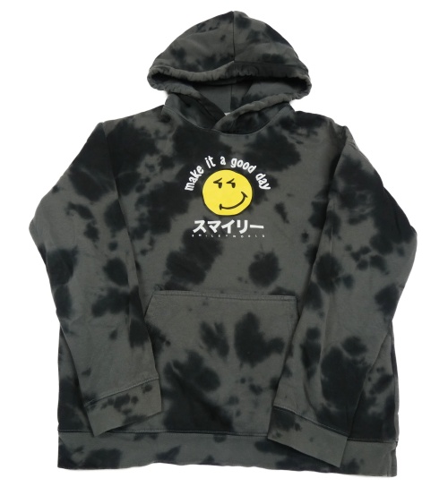 Tmavošedo-černá batikovaná mikina se smajlíkem a kapucí H&M