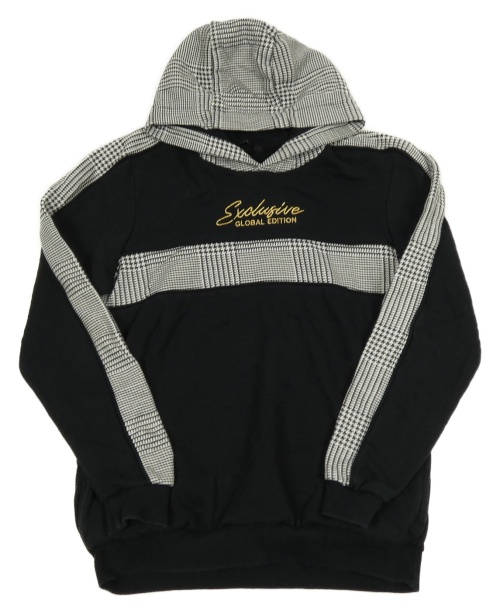 Černo-bílá mikina se vzorovanými prvky a nápisem a kapucí George