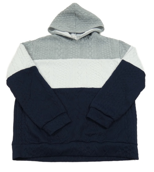Tmavomodro-šedo-bílá pruhovaná vzorovaná mikina s kapucí Shein