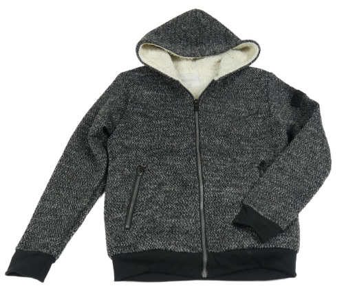 Černo-šedá melírovaná propínací zateplená mikina s kapucí