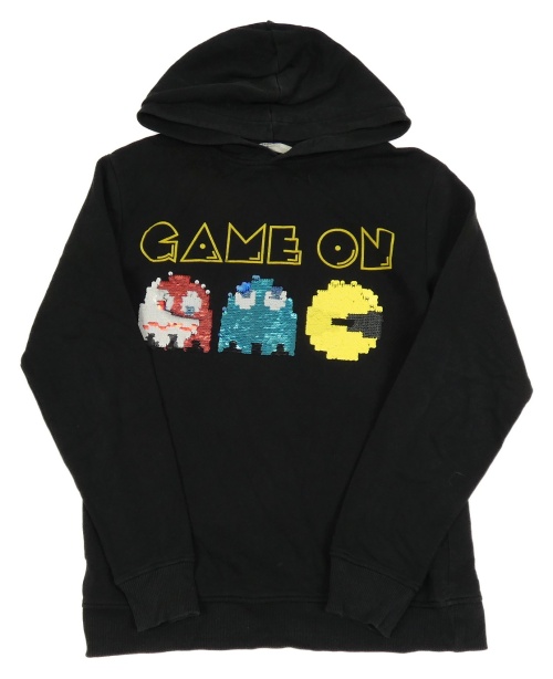 Černá mikina s obrázky z flitrů a kapucí H&M