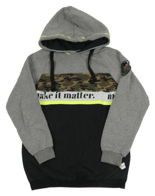 Šedo-černo-army mikina s kapucí