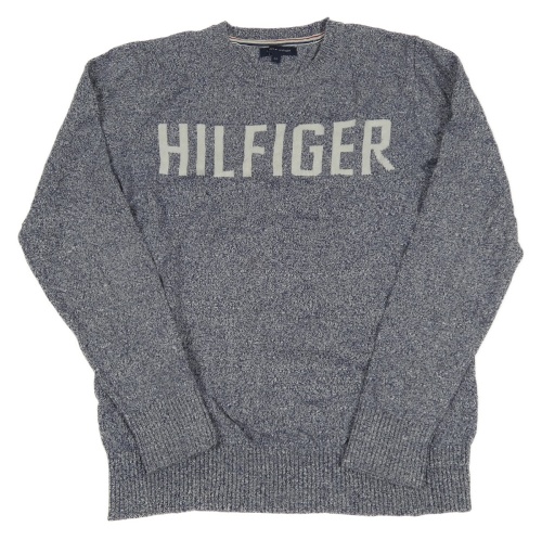 Tmavomodro-bílý melírovaný svetr s logem Hilfiger