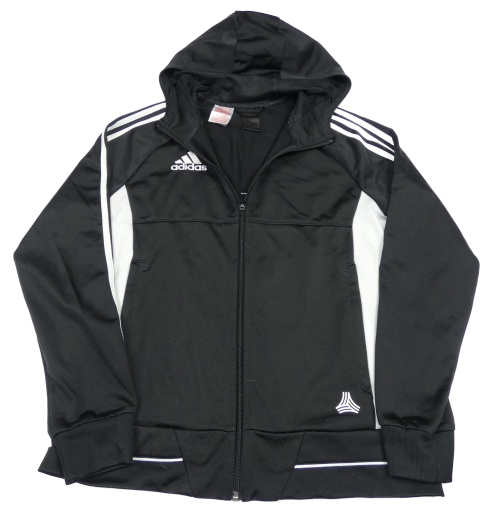 Černo-bílá sportovní funkční propínací mikina s logem a kapucí Adidas