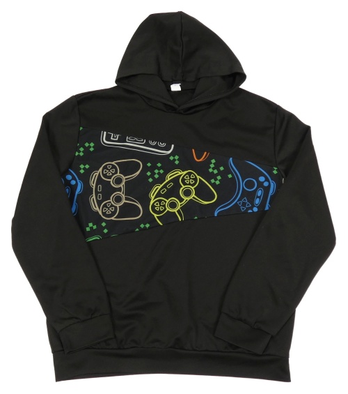 Černá sportovní mikina s ovladači a kapucí SHEIN