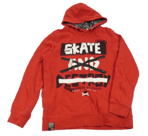 Červená mikina s nápisem a kapucí C&A