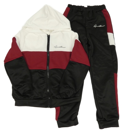 2set - Bílo-vínovo-černá tepláková souprava s nápisem Shein