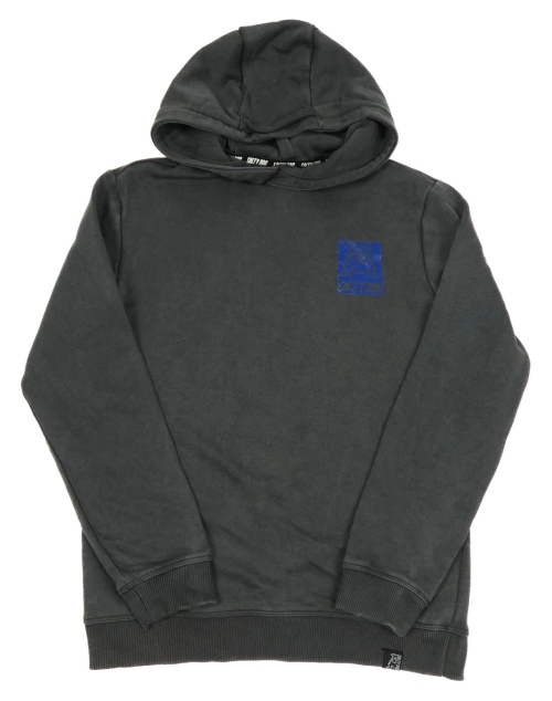 Tmavošedá mikina se psem a kapucí