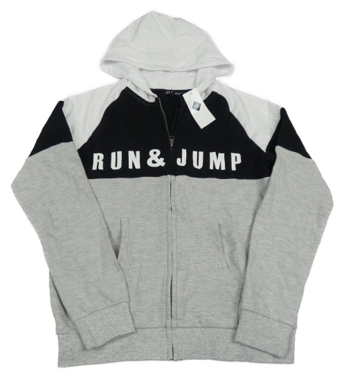 Nové - černo-šedo-bílá propínací mikina s nápisem a kapucí