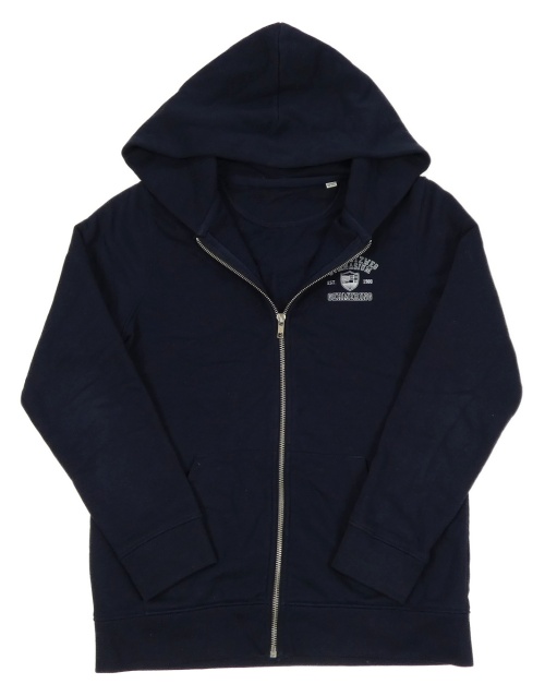 Tmavomodrá propínací mikina s potiskem a kapucí