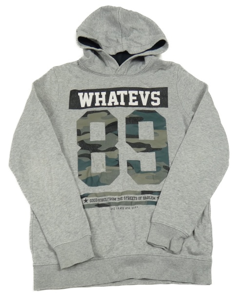 Šedá melírovaná mikina s army číslem a kapucí C&A
