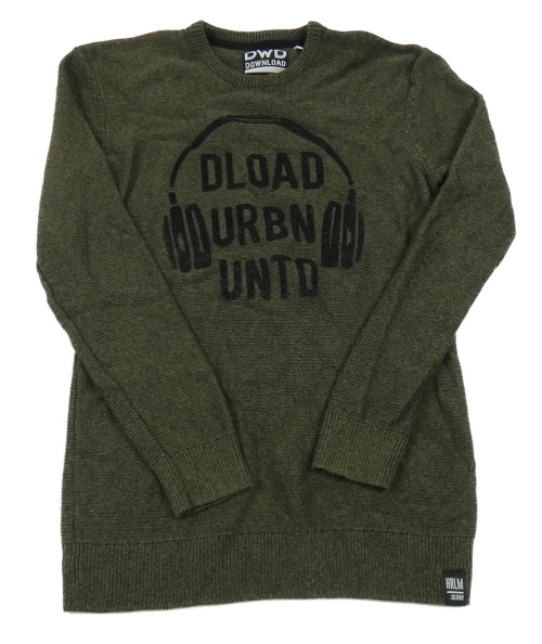 Khaki melírovaný svetr se sluchátky a nápisem C&A