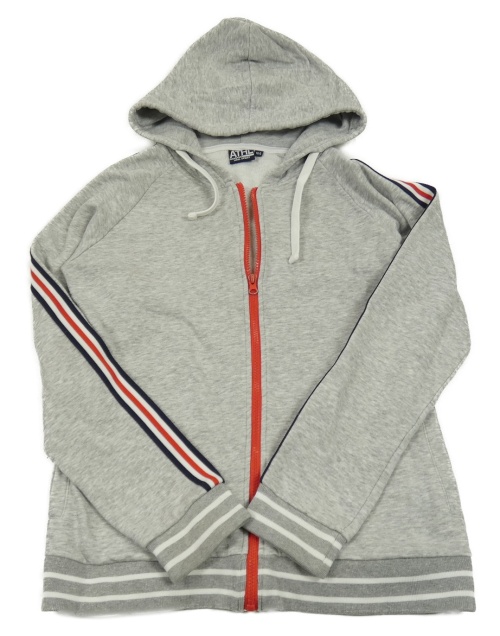 Světlešedo-modro-červená propínací mikina s kapucí