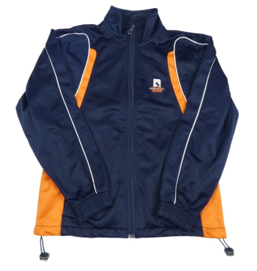 Tmavomodro-oranžová propínací sportovní mikina s nápisem
