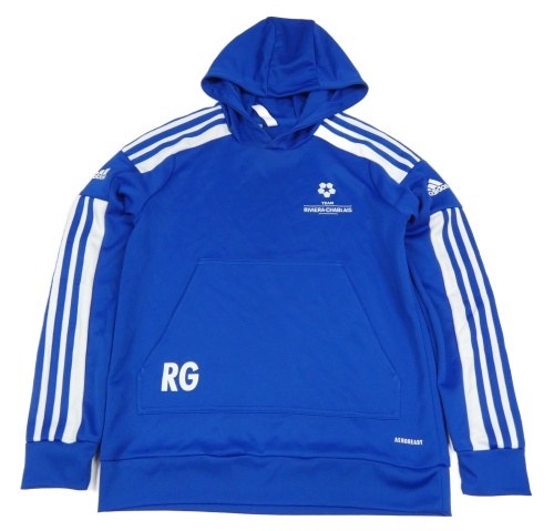 Tmavomodro-bílá sportovní mikina s pruhy a nápisy a kapucí Adidas