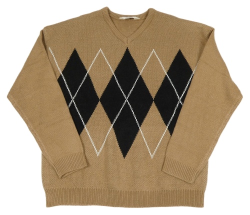 Hnědo-černo-bílý pletený svetr s károvaným vzorem H&M